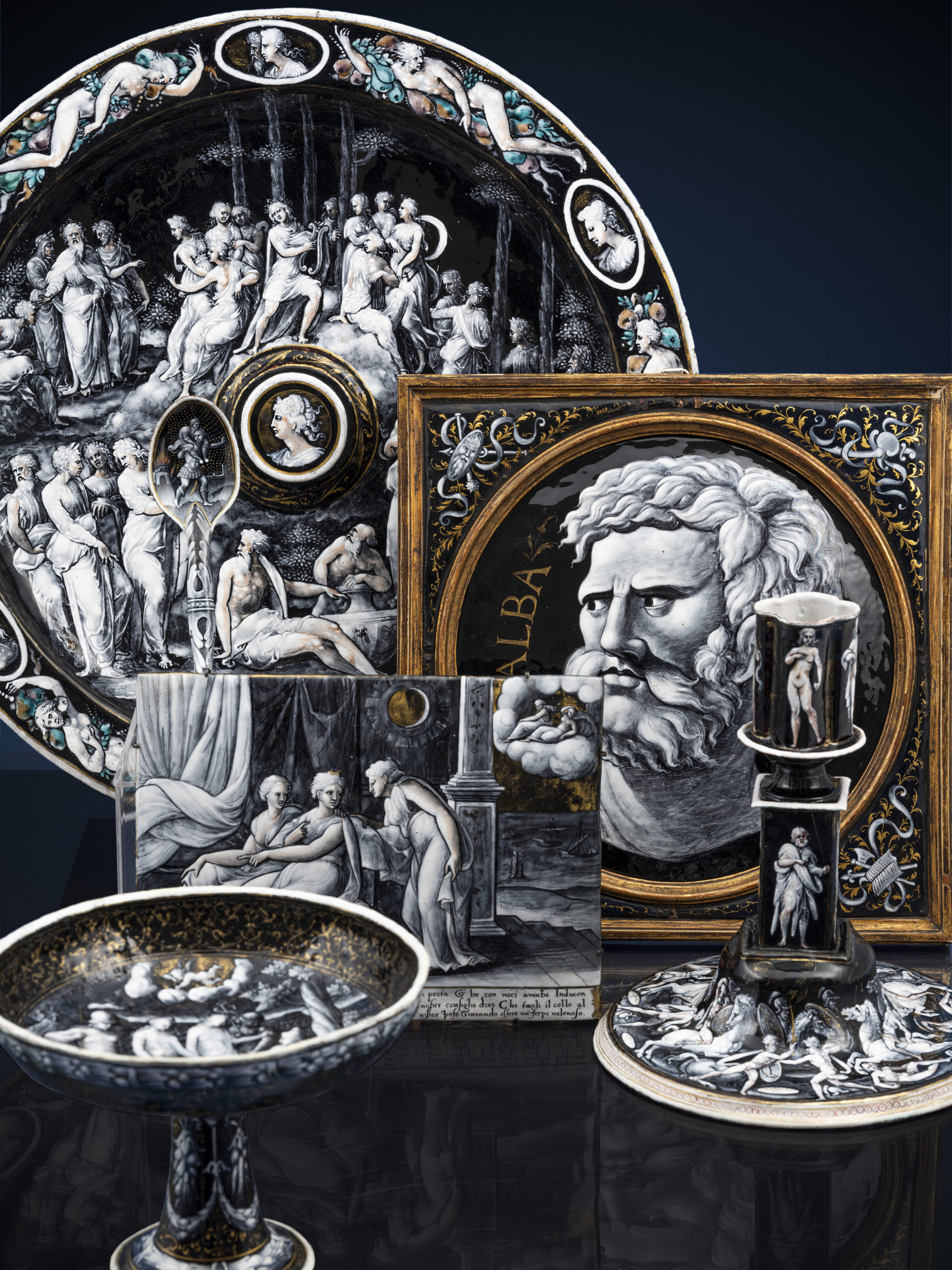 Les émaux de Limoges de la Renaissance sont une spécialité de longue date de notre galerie. Dans les années 1990, Hubert de Givenchy vend à Alexis et Nicolas Kugel sa célèbre armoire au char d’Apollon de Boulle et la collection d’émaux qu’elle contenait. Il vouait à ces pièces, notamment en grisaille, une passion débordante, à contre-courant d’un marché alors en sommeil, et s’était constitué une collection remarquable. Présentée lors de la Biennale des Antiquaires de 1994, celle-ci ne fut pas dispersée : elle fut vendue en bloc, dès les premières heures de l’inauguration, à Pierre Bergé. La nouvelle de cette vente spectaculaire suffit à redonner un souffle au marché des émaux de Limoges de la Renaissance.